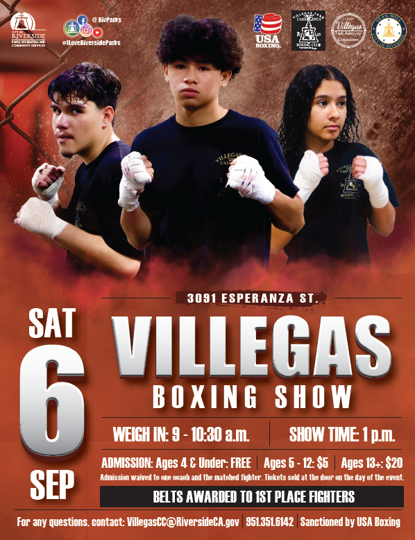 Club Event: Villegas Boxing Show: weigh-ins: 9am-10:30am. Show starts at 1pm, doors open at noon.